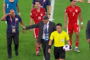 赛后印尼球员及球队官员不满马宁判罚,被马宁接连出示3张红牌。首先印尼球员哈耶赛后不断朝马宁输球,被出示红牌。